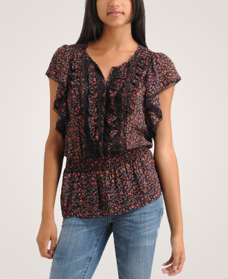 Long Sleeve Floral Mesh Ruffle Tunic.