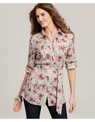 tyle&co. Tunic, Floral Print Belted Utility Pocket.