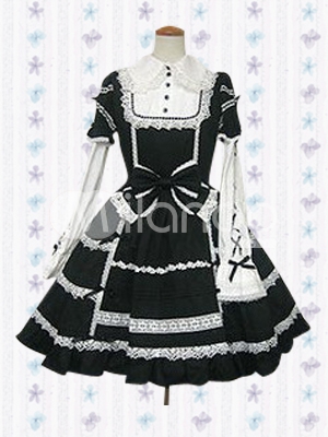 | Black And White Cotton Gothik Lolitha Dress Sort Sleave -5 |
