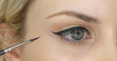 5. Line the top lash line with a black liner (I'm using a cream liner) and add a wing at the end. The wing should be small - much smaller to what I would usually do!