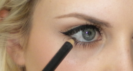 6. Line the waterline with MAC Powersurge Eye Kohl which is a lovely antique gold colour. You could also use an off white pencil if you wanted to. Apply mascara.