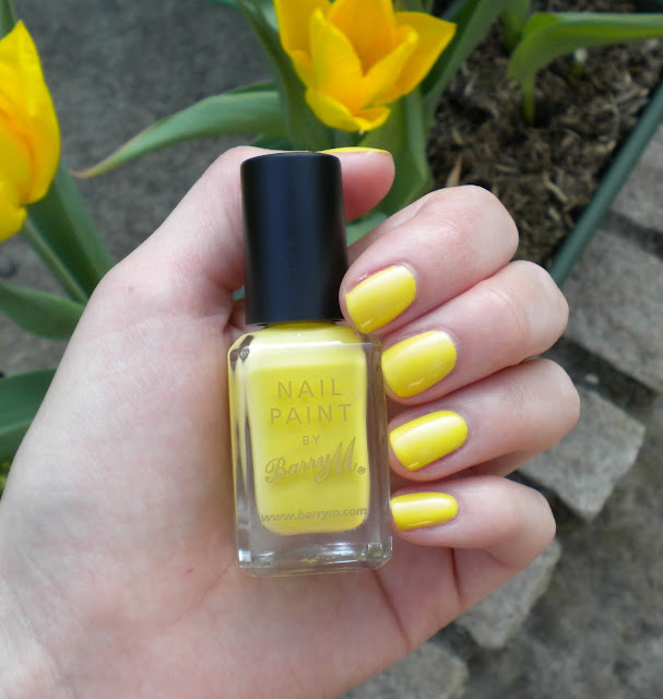 Barry M is one of my favourite brands for nail polish and this is my newest acquisition from them. It's called Lemon Ice Cream # 307 and it's just a gorgeous shade of yellow - bright but not garish. Unfortunately the texture of this one is not too fantastic. While it applies easily it is quite sheer so 3 coats are required which is a bit time consuming. For a few euro though I don't think you can complain too much! I'm really loving the colour yellow lately and I'm very much enjoying having this polish on my nails - i'ts lovely and cheerful! (: I'm wearing 3 coats in these photos followed by Illamasqua Top Coat.