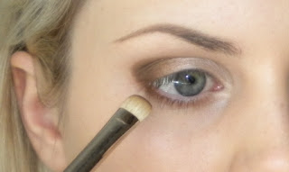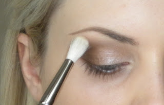 5. With a small pointed brush (I'm using the Laura Mercier Crease Brush), take some of the golden brown shade from the NARS Surabaya Duo and apply it to the very outer corner and slightly into the outer part of the crease so that it creates a 'c' shape.
