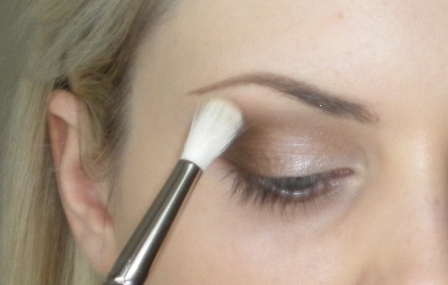 2. Blend MAC Soba eyeshadow onto the outer half of the lid and into the crease with a fluffy blending brush like the MAC 217.